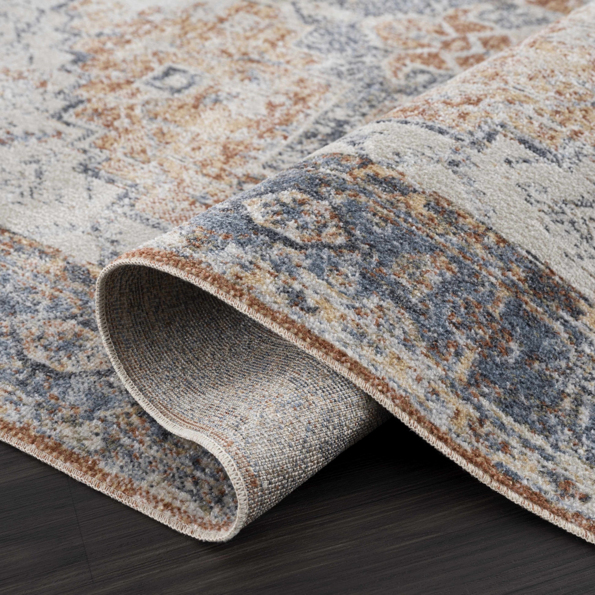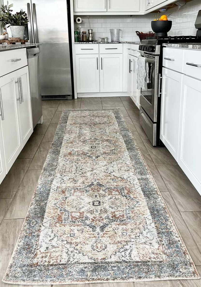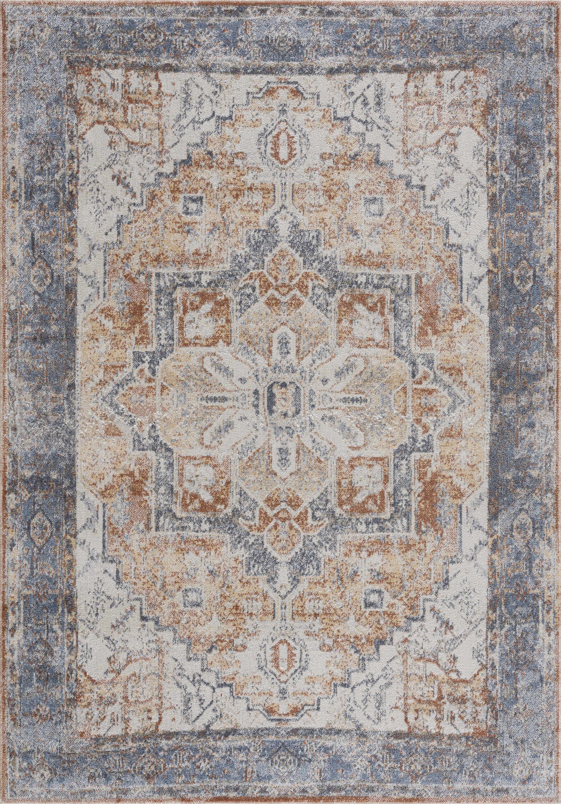 The Blue Orange Hera washable area rug showcases vibrant blue and orange hues, inspired by traditional Turkish patterns. This durable, washable rug brings a lively touch to any room, combining timeless design and practicality. Perfect for adding character and color to high-traffic areas while maintaining a classic look.